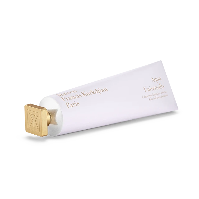 La sua texture è morbida, leggera e rapidamente assorbibile: massaggiata sulle mani, le lascia lisce, setose e mai unte. Il tubetto, realizzato in alluminio riciclato al 100%, richiama il design essenziale della Maison nel tono sobrio e pulito di Aqua Universalis, con un tappo squadrato ispirato ai cabochon delle bottiglie profumate e inciso con il monogramma MFK.